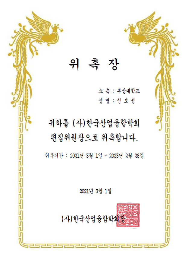 fnctId=bbs,fnctNo=5166 작성일 2021.11.08 수정일 2021.11.08 작성자 김진수 조회수 377 2021 산업융합학회 편집위원장 위촉 첨부파일 첨부파일이(가) 없습니다.